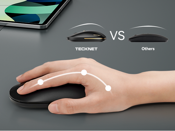 Ergonomic wireless bluetooth mouse designed for all-day comfort in hand and fits your fingers perfectly, the soft rubber scroll wheel of mouse makes scrolling easier and more comfortable compared to other plastic mice. And whether you're a lefty or a righty, our symmetrical mouse fits comfortably in either hand.
