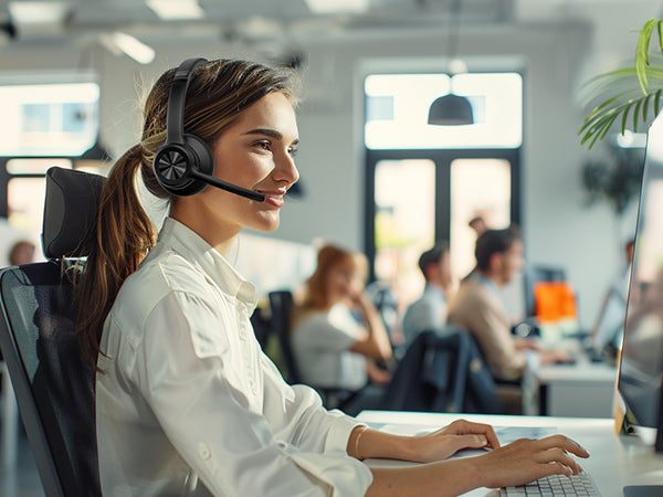 The noise-canceling headphones feature a 270° rotatable microphone, adjustable headband, and soft ear cushions to ensure you have a comfortable working experience.