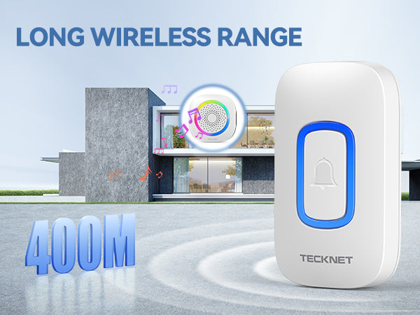 Operating range up to 1300ft / 400M in open areas ensures that you can hear and answer the doorbell promptly. Regardless of your location, whether you are in a room, garden, or kitchen, rest assured that you will always be easily notified when someone is calling from outside.