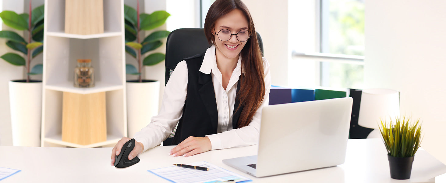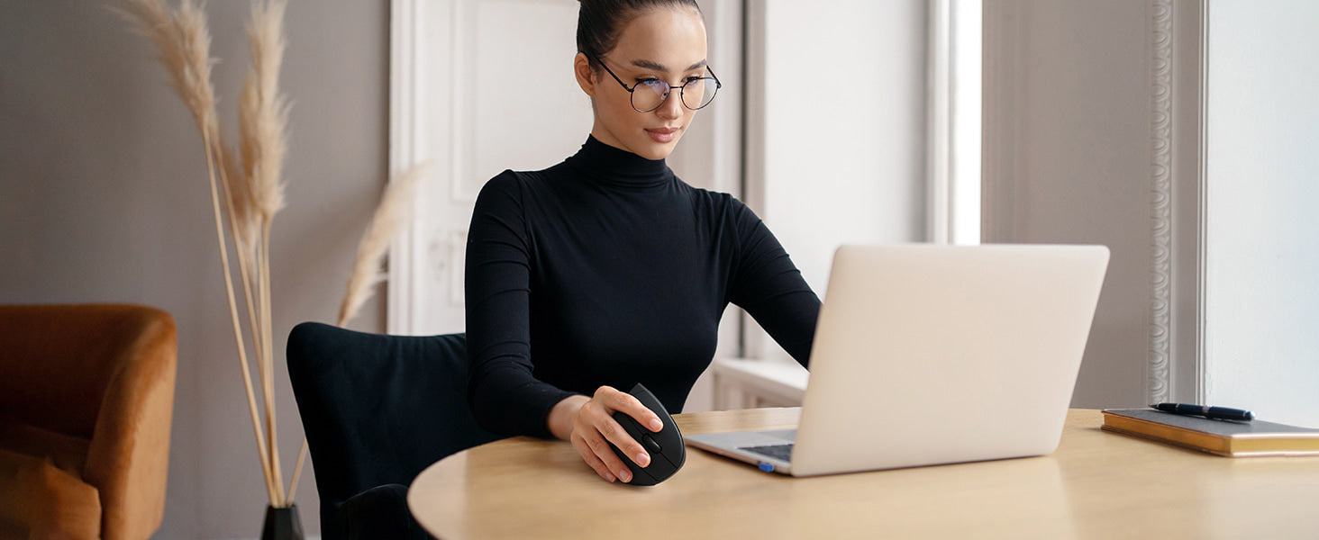 The ergonomic vertical mouse allows you to adjust your arm and wrist to a comfortable position, reducing arm muscle tension for more comfortable movement and less stress.