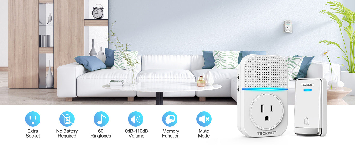 The miniaturized design of the wireless doorbell and comes with an external socket. The maximum power of the external socket can reach 1100W, which is easy to use. The combination of doorbell and socket will bring convenience to your life.