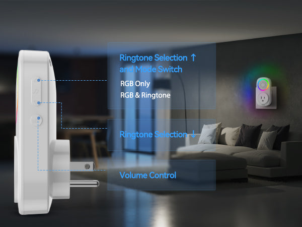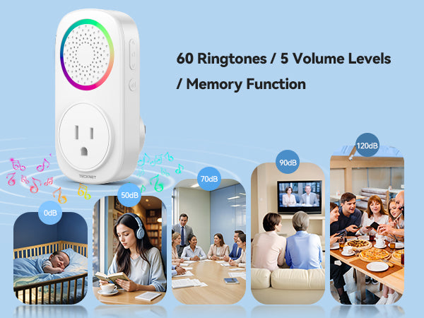 The wireless door bell plug in receiver features a bright RGB light that makes bells highly visible, making this wireless doorbell ideal for the hearing impaired. Besides serving as a door chime & bell, this device also functions as a pager for the elderly and pregnant women, suitable for different scene.