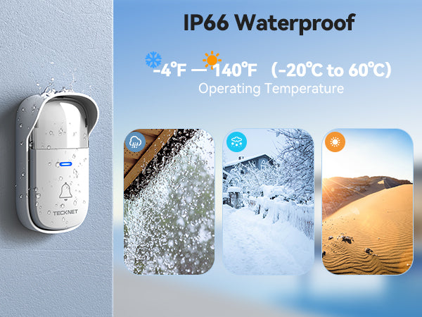 The doorbell is waterproof up to IP66 and robust enough to withstand extreme environments. It can withstand temperatures from -4°F to 140°F, including sunny, rainy, and snowy.