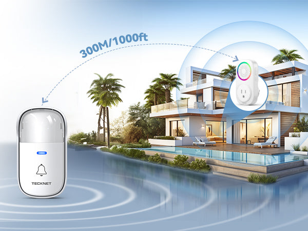 The door bell ringer wireless boasts a working range of up to 1000ft in open spaces without disrupting other nearby cordless devices. A robust and stable radio signal ensures you'll never miss a visitor.