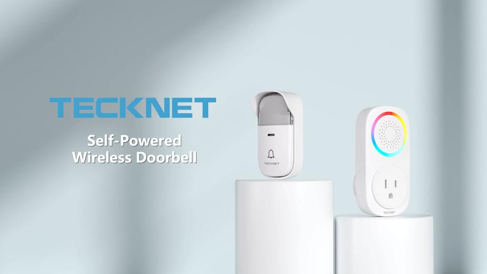 TECKNET Self-Powered Wireless Doorbell Kit - Plug-Through Door Bell with RGB Light