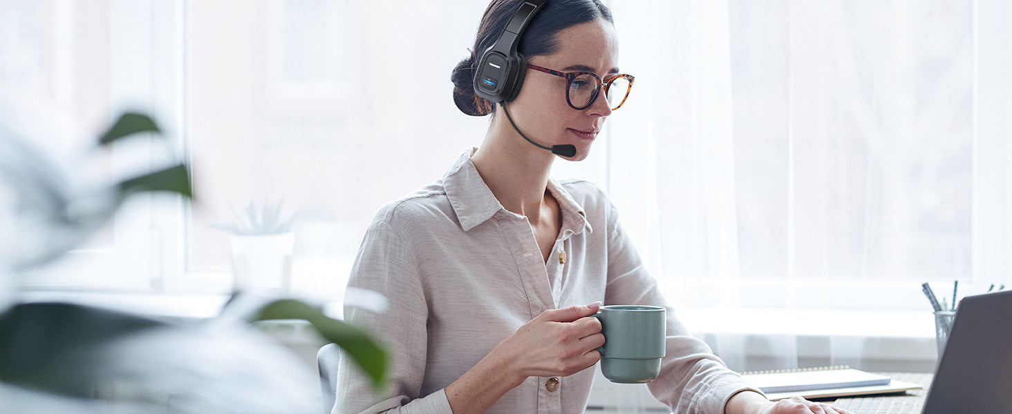 270° rotatable flexible mic suitable for alternating left/right ear wear to release pressure. Suitbale for call centers, offices, remote work, home, classrooms, Skype, Zoom, VoIP, webinars, and truck drivers.