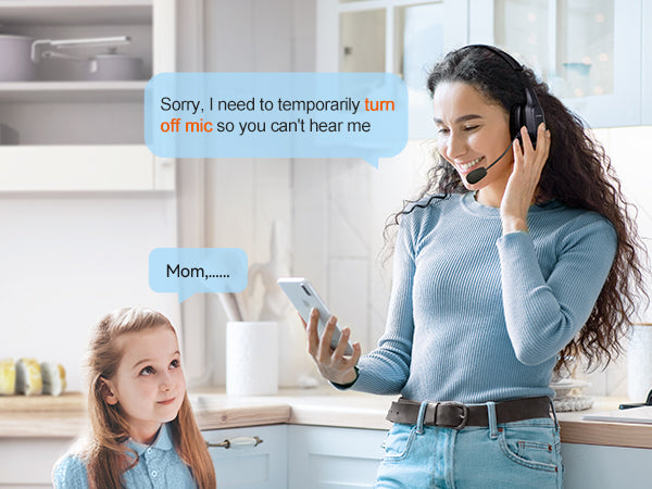 Wireless headset with the mute function to protect your privacy (doesn't mute while off a call), the other party can't hear you temporarily. Click the mute button to toggle on and off the microphone.