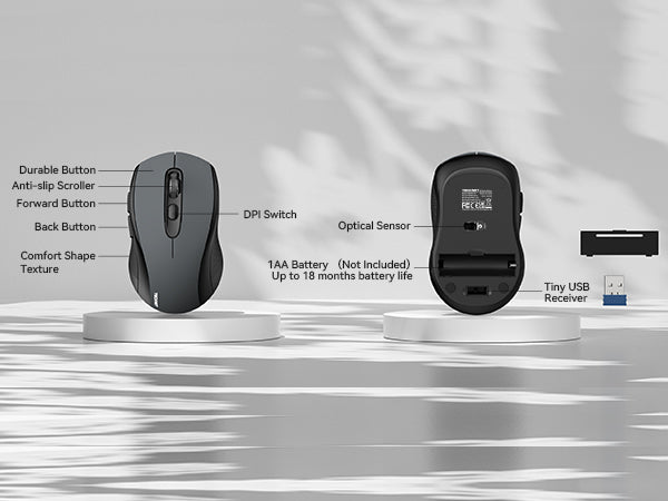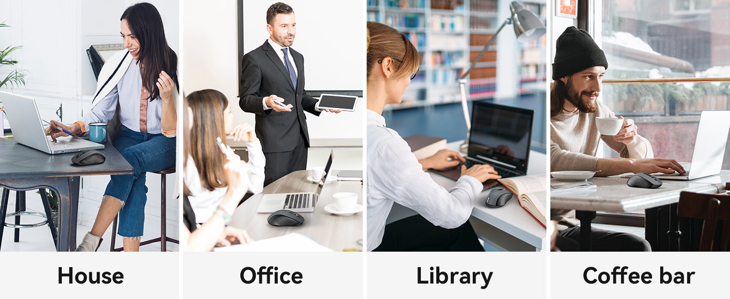 The wireless mouse for laptop passes the 10,000,000 times keystroke test to guarantee extra durability, The wireless computer mouse's silent button allows you to work in a quiet environment without worrying about disturbing others.