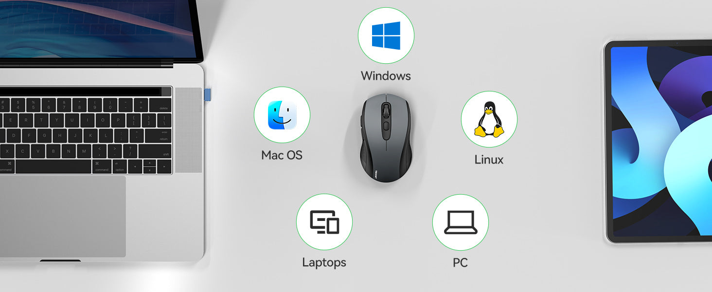TruWave - provides precise, smart cursor control on many surface types to wireless mouse for laptop; CoLink - once the wireless computer mouse is paired there’s no need to re-establish pairing after a signal loss or shutdown.
