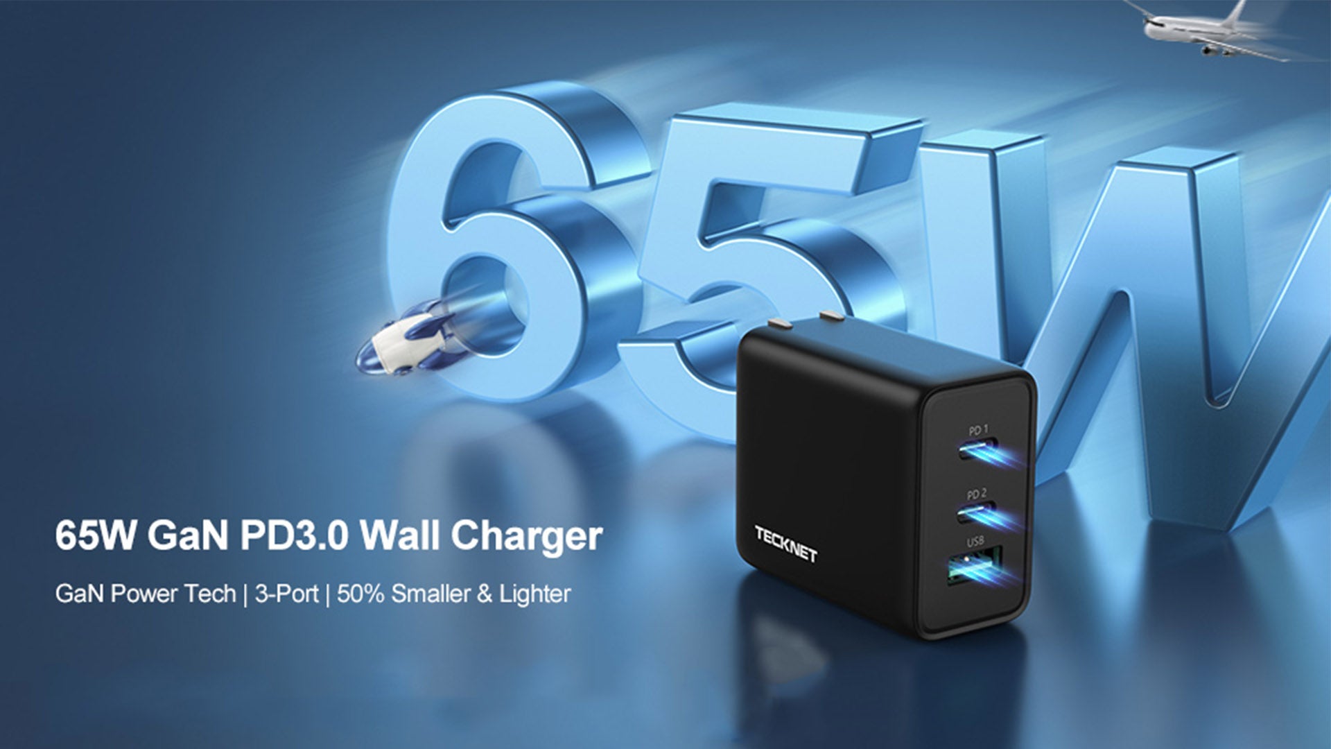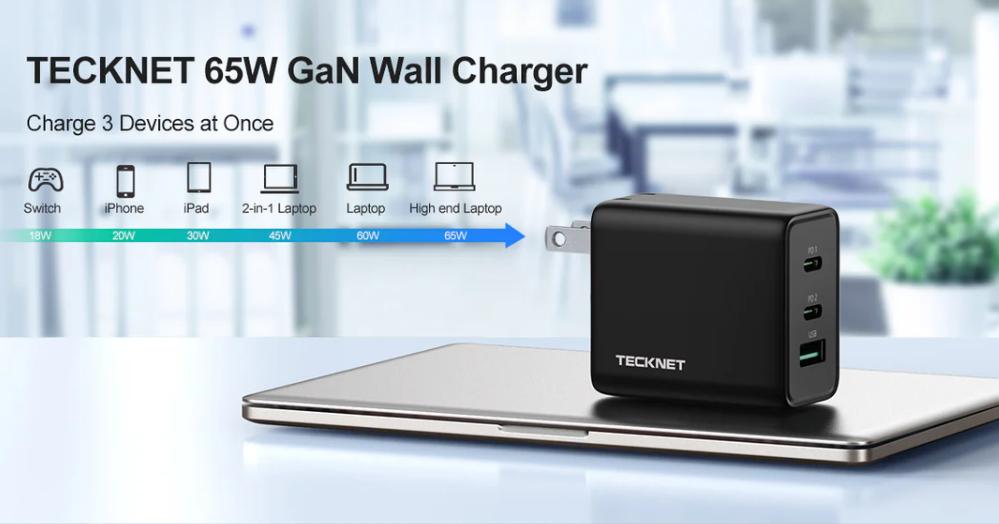 TECKNET 65W 3-Port USB C GaN Fast Charger