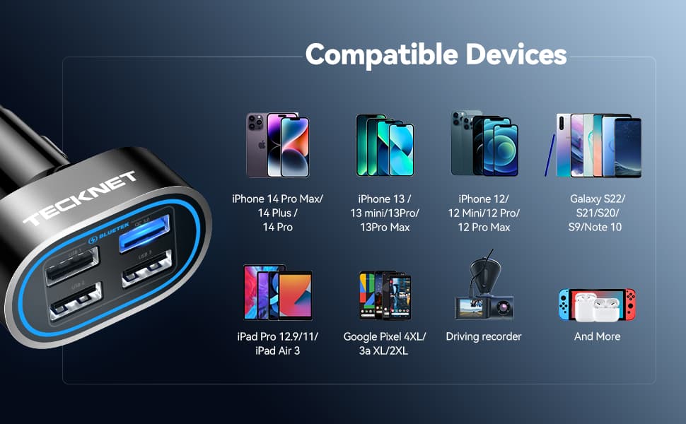 Upgraded 54W USB Car Charger provides you with a fast-charging experience, the soft LED light makes It easy to find at night.