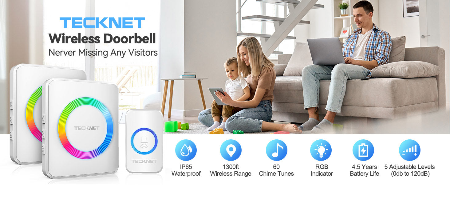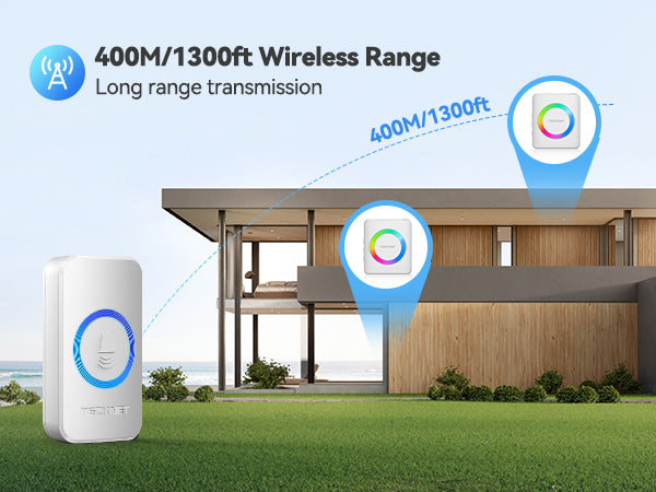 TECKNET Waterproof 1300ft Range Wireless Doorbell Chimes