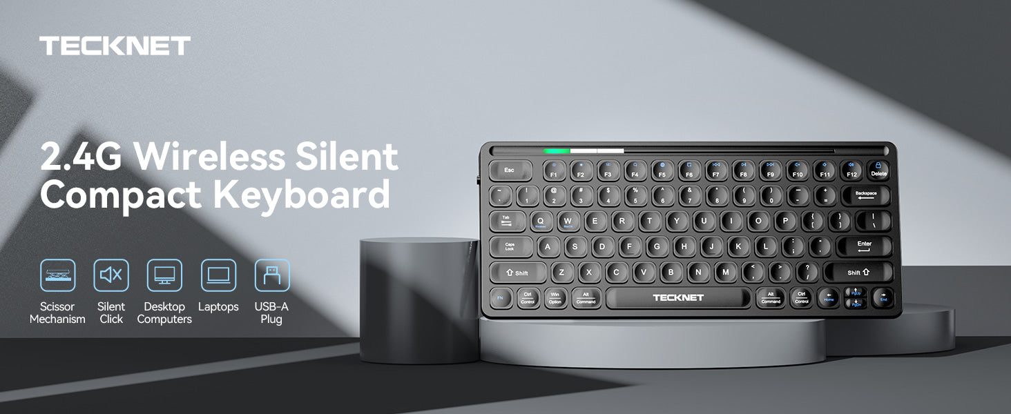 TECKNET 2.4G Wireless Keyboard with Media Hotkeys