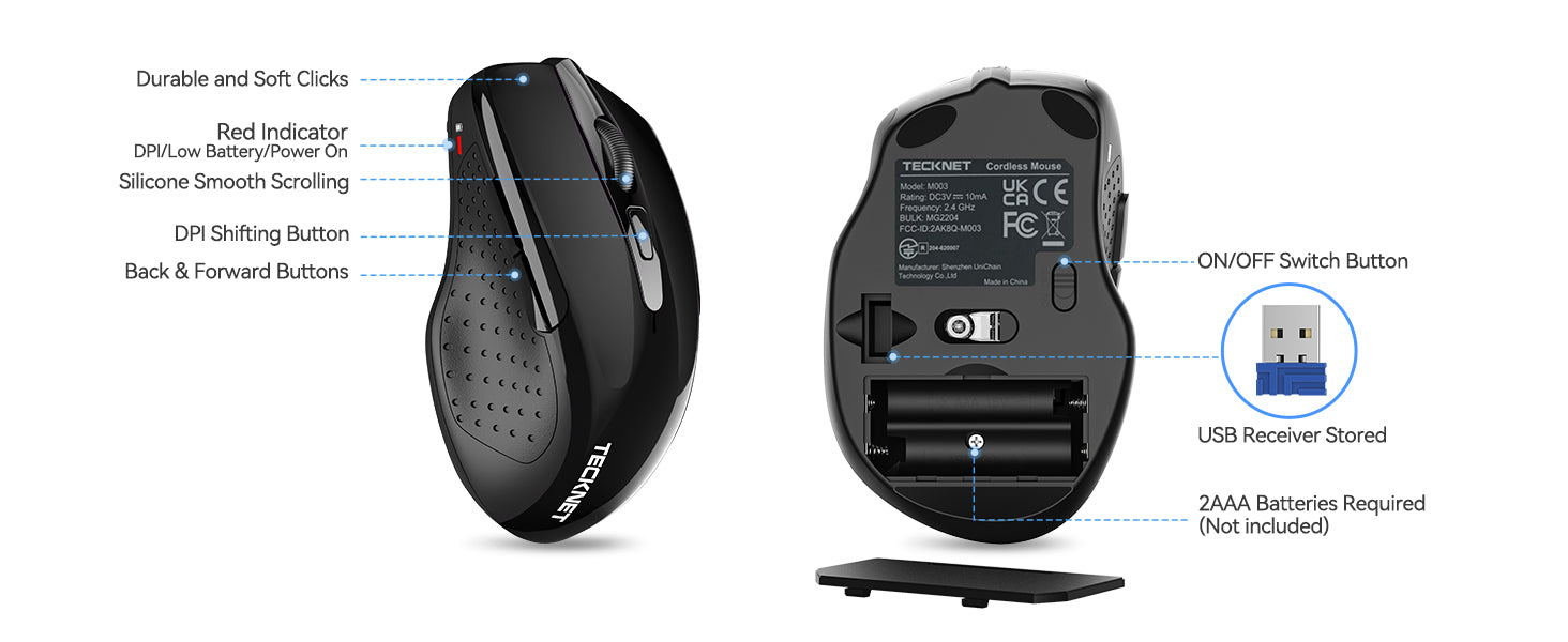 TECKNET Battery Powered 2.4G 2600 DPI Wireless Mouse